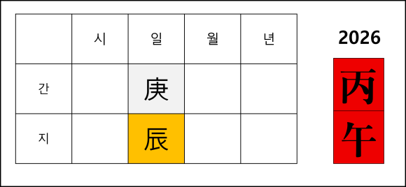 | 2026 병오년 신년 운세 | 경오일주(庚午日柱) (0) | 2026.01.03 |