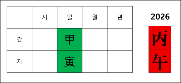 | 2026 병오년 신년 운세 | 갑오일주(甲午日柱) (0) | 2026.01.07 |