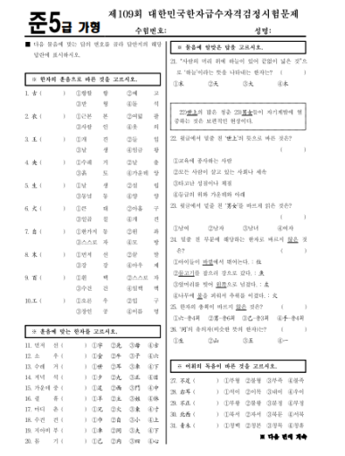 준5급은 본격적인 한자 학습의 첫 관문이라고 볼 수 있어요.